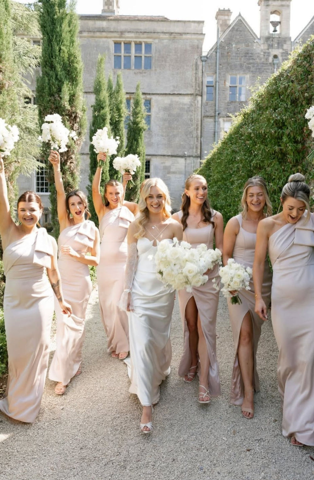 Si vous avez cherché votre propre robe de mariée, vous savez combien l’expérience est personnelle. Certaines coupes mettent en valeur des silhouettes différentes, et la confiance en soi joue un rôle essentiel. Optez pour des robes offrant divers niveaux de couvrance, la possibilité de porter un soutien-gorge, ainsi que des coupes fluides ou plus ajustées. Un cortège de mariage à l’aise sera toujours plus élégant en photo qu’un groupe passant la journée à ajuster bretelles et coutures.